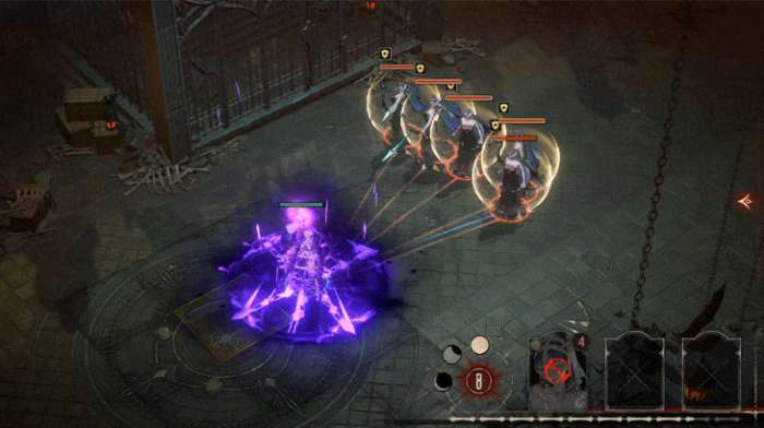 奥义“苦痛狂欢盛宴”,在指定圆形区域召唤持续一定时间的法阵中的所有敌方单位施加“持续伤害”的血痕效果,法阵每秒造成一定的穿透伤害,大招带来的伤害时群体性的,且还会附加负面效果,让敌方受到较高的持续性贯穿伤害,快速削减敌方的血量。