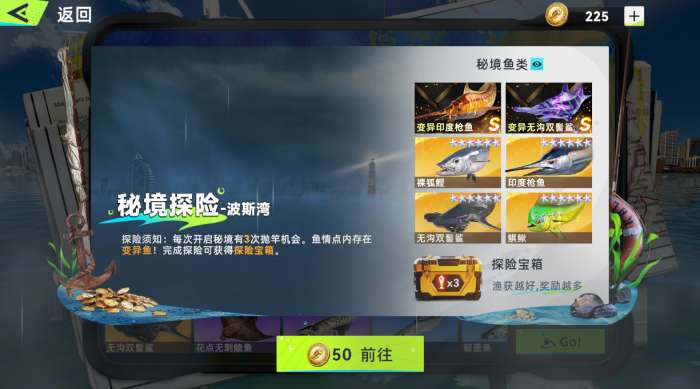 1)秘境:遇到秘境,如果有秘境币的情况下,且想追这个秘境里的变异鱼或大鱼,可以直接进入秘境挑战。就算钓不到变异鱼也会钓到这个地图的大鱼,很划算!