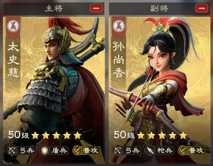 孙权被动可提升部队暴击率、暴击伤害,在持续作战的场合可通过普攻打出高额伤害。孙尚香可大幅提升队伍穿透率,加上车悬阵,可大幅降低队伍受到的反击伤害,维持阵容兵力稳定。