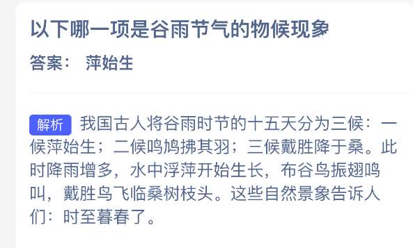 以上就是以下哪一项是谷雨节气的物候现象?支付宝蚂蚁庄园2026年4月20日答案最新,更多相关攻略,请关注pk游戏网更新!
