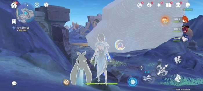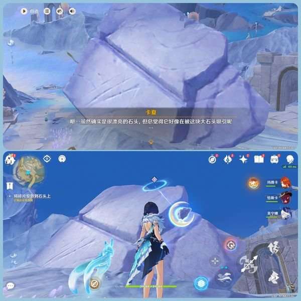 2.开启元素视野,在奇怪的大石头右侧即可找到带有月矩阵力的石头