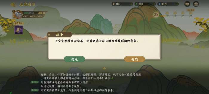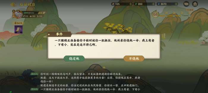 软件提交 专题合集 热门手游指间山海游戏中山海传奇后羿怎么通关?本篇给大家带来了《指间山海》山海传奇后羿篇攻略,下面的贴出的选项截图都是随机出现的,但是看见迎战和逃跑的选择统一选择迎战 ,可以劝解的就选择劝解。