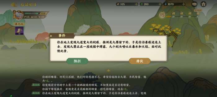 随后会自动和修蛇战斗 会用到大风之力 没这个道具必死 选择分水➕魅力