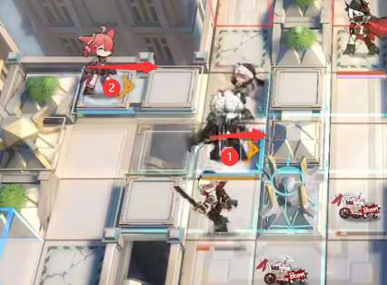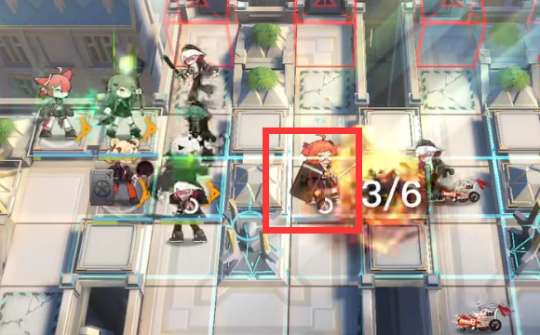 这波真银斩打完上面的甜品车即可撤退银灰,如下图所示部署防线:黑角 → 砾 → 米格鲁,等待银灰再部署完成。