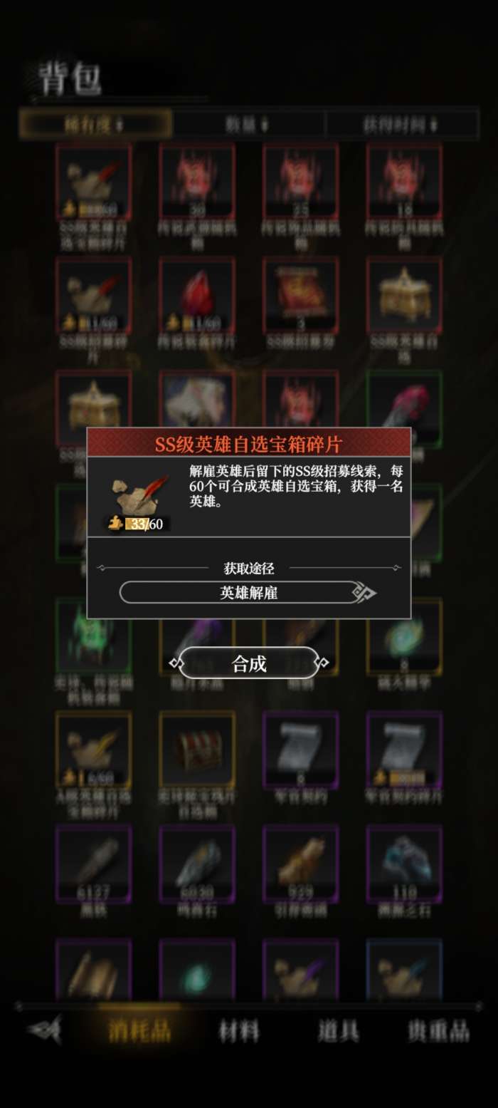 此外还可以将不想要的SS英雄进行解雇获得招募线索,集齐60个即可合成英雄自选宝箱,可以任意选择你想要的SS英雄!