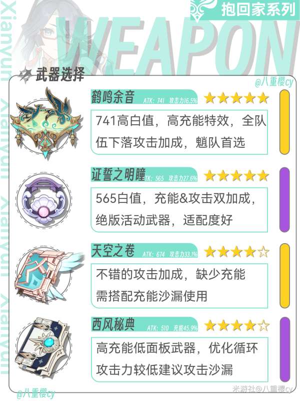 ●但充能循环特别好,如搭配魈,这个武器是推荐考虑的;