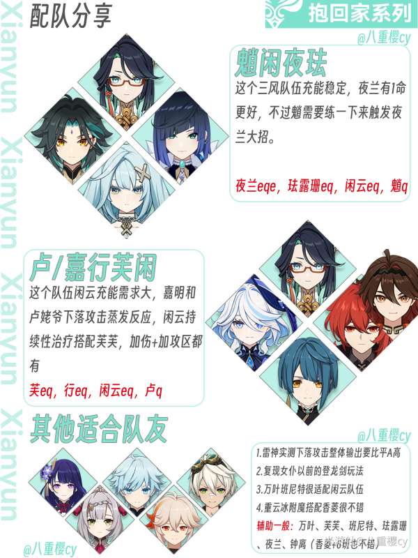 ●魈厨玩家,这个闲云2+1是最优的,但成本太高了(仅限于有实力的小伙伴)