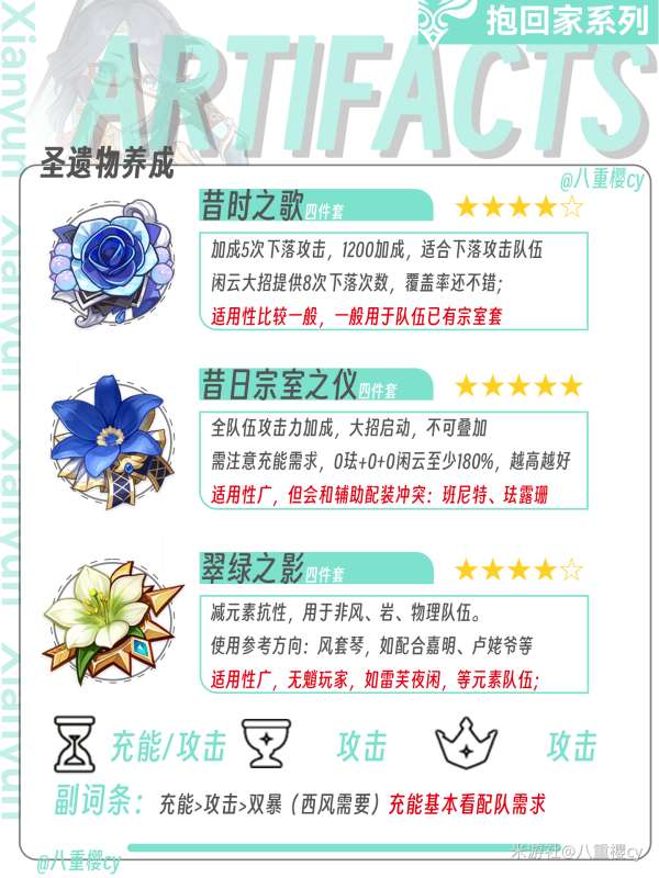 ●这个基本要搭配充能沙漏,所以对圣遗物要求要高,如果你充能高