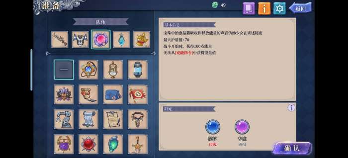 其他角色不重要带有攻击指令就行增加伤害,装备撘配是经典的护盾转伤,暗语宝珠必带可以开局100能量