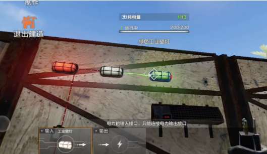 在所有的元件认全之后,那接下来自然就是接线的关键部位。这一个方法没有掌握,那设备依然没有任何的反应。刚开始连的时候点了好半天没有任何的动静,后来才知道先要选一个发电设备,在安装发电设备之后就会有电力接线的按钮,只需要点一下就可以进入到电路接建造的模式。进入这一个模式下面就会有连接的界面,这里就可以看到设备有没有连接好。如果这一个界面没有任何的线条,就说明没有连接上,接着就需要连接用电设备,例如可以选择工业壁灯。