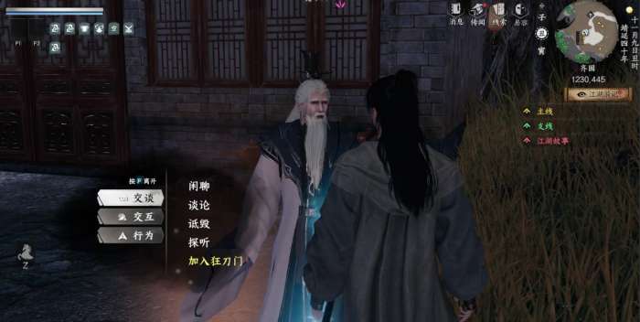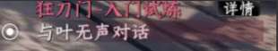 一开始,你需要前往坐标1230.445与莫千山进行首次对话,和他聊聊加入狂刀门的事。其实,这时候的莫千山看上去并不强大,刚开始对话时也没啥大波澜,但如果你选择了加入狂刀门,剧情就会随之展开。稍等片刻,一场和莫千山的切磋开始了,他的刀法并不复杂,你只需要认真应对,很快就能获得胜利。战斗结束后,做出“加入狂刀门”的选择,你的冒险之旅就此拉开帷幕。