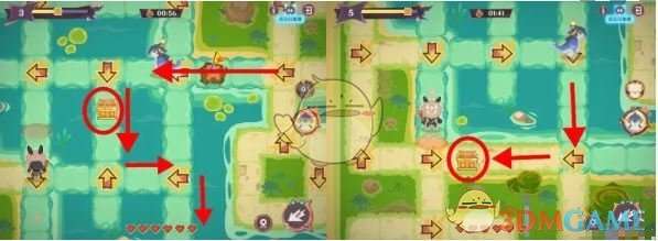 4、从蓝格路过渡到黄格,绕一圈拿第三个宝箱,然后往上走,接着往右绕一圈拿第四个宝箱再往左回来。