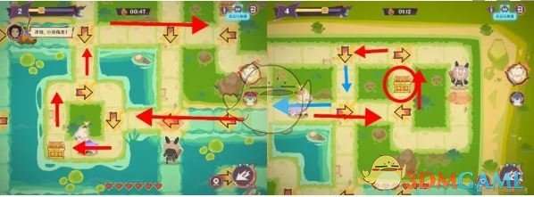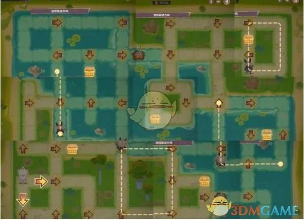 2、拿到宝箱绕一圈,接着往前方蓝色格子前进。