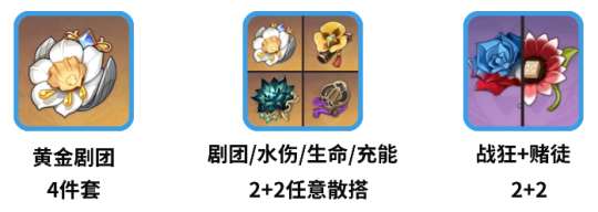 前期过渡可以使用战技/水伤/生命/充能,任意2件套进行散搭。