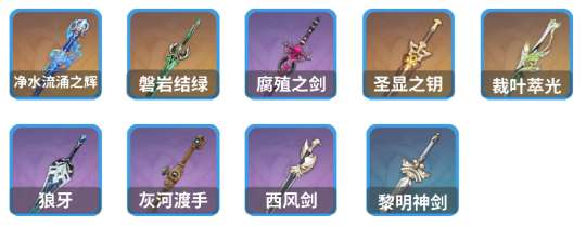 腐殖之剑:4星泛用优选武器,可以用来输出或辅助。副属性可以提供充能能力,从而加快使用角色大招的循环。该武器的被动技能可以提供元素战技的伤害和暴击率。但需要注意的是,这是一款活动限定武器,错过活动后就会绝版。