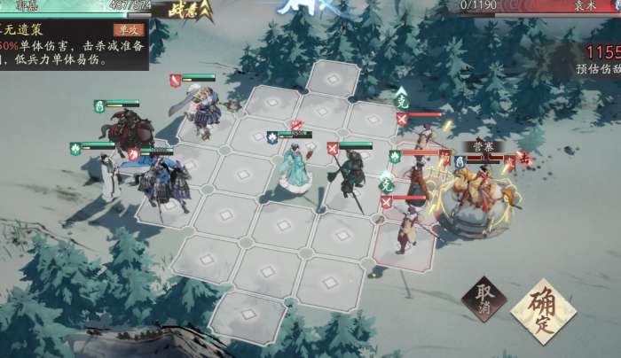 值得一提的是,吕布在血量低于30%时会直接撤退,随后进入到第二阶段的狂暴状态,此时玩家可以使用全军出击的奇谋效果,使用前排单位直接将吕布卡至大前方,随后配合夏侯惇的横扫千军,以及郭嘉的法术破甲,直接对吕布进行一次斩杀。