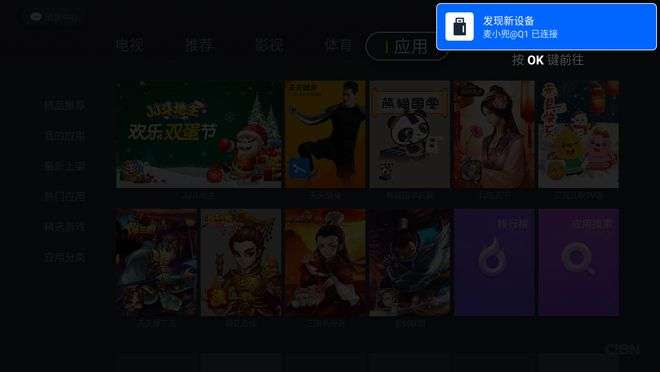 1、首先在本站下载好银河奇异果apk文件,将apk文件复制到U盘中,将存有安装包的U盘插到电视上,系统会提示“发现新设备”,按【OK键】打开U盘