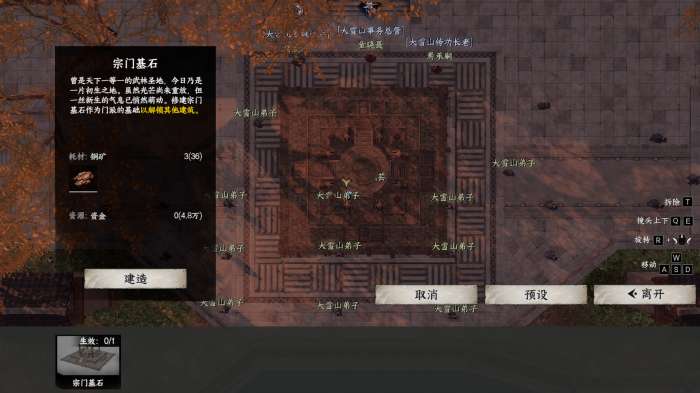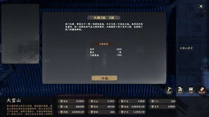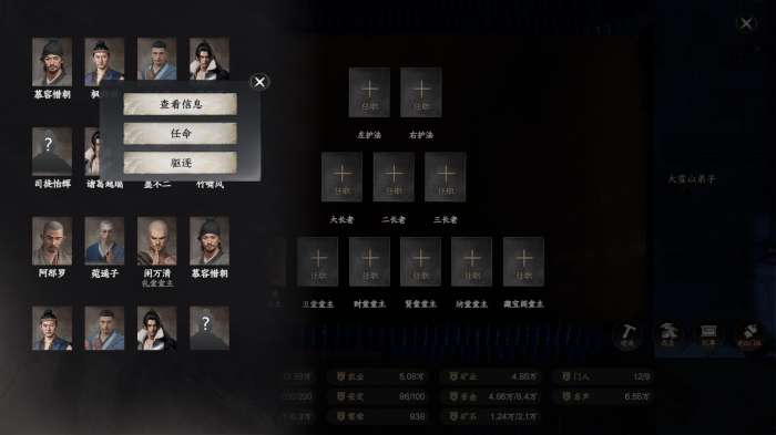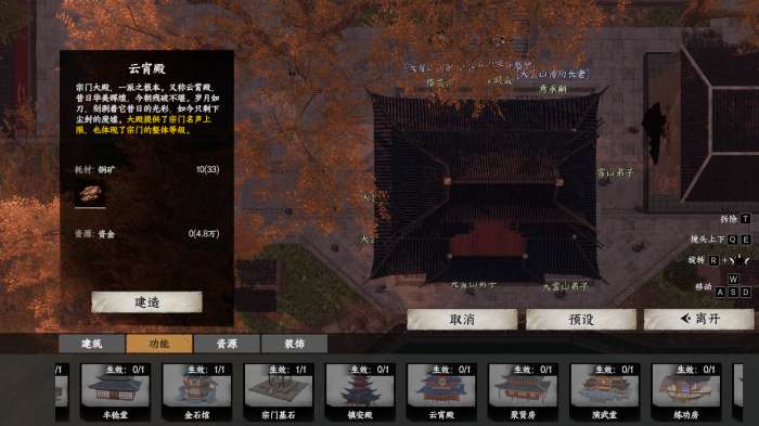 安定度可以建造镇安殿派遣门人完成任务增加,安定度过低门派弟子会叛逃