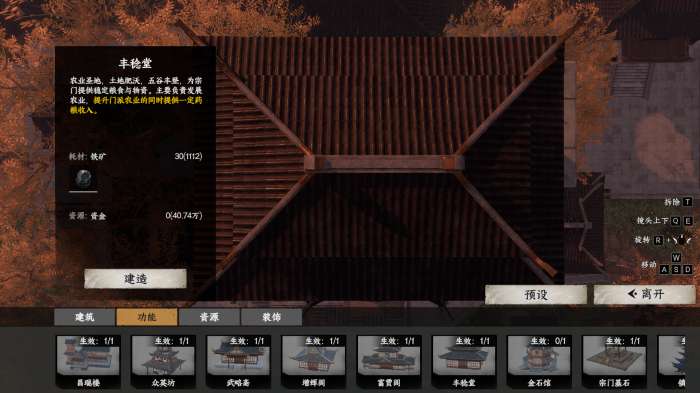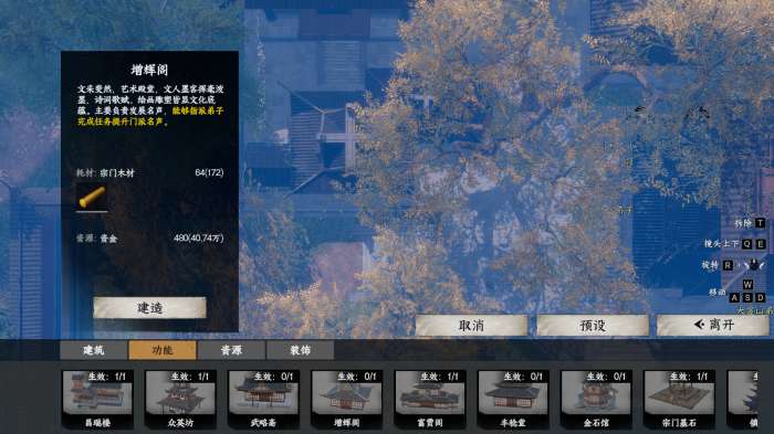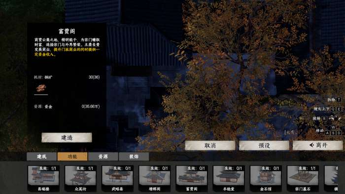 繁荣度可以建造昌瑞楼派遣门人完成任务增加