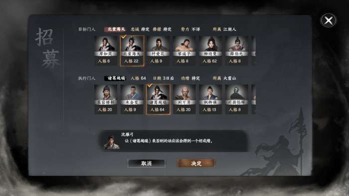 招募门人可以建造聚贤房派遣弟子招募,人格越高招募几率越大