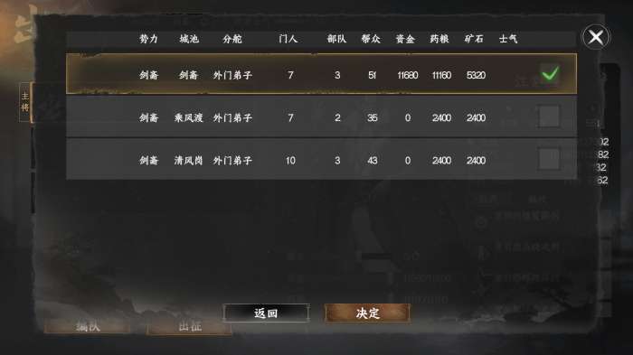经营门派已经说完,介绍一下门派出征,需要成为掌门才可出征