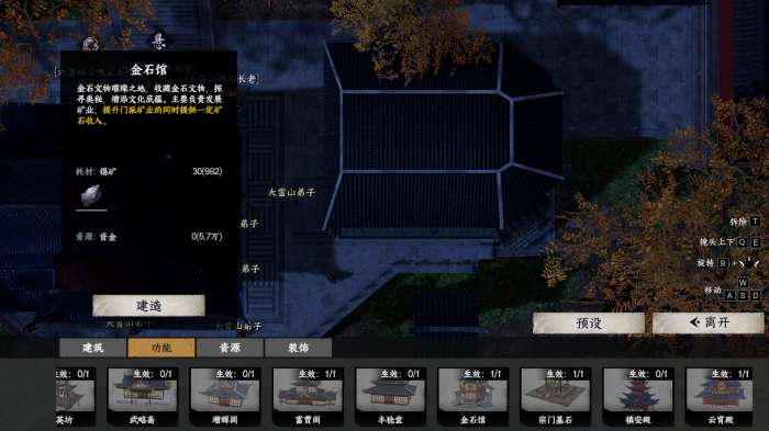要致富先挖矿和砍树,获取宗门木材和宗门石料,是建造宗门建筑必不可少的资源,分别建造9个