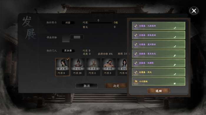 吞并势力后可以建造巧匠坊派遣门人完成任务获得武学 化境卷