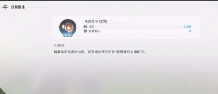 这是莉莉的星赐技能,在精准防御以后,莉莉一旦反击命中敌人以后,可以给敌人附加上1枚风属性的失序印记,注意只能是前两次攻击敌人才能附加。