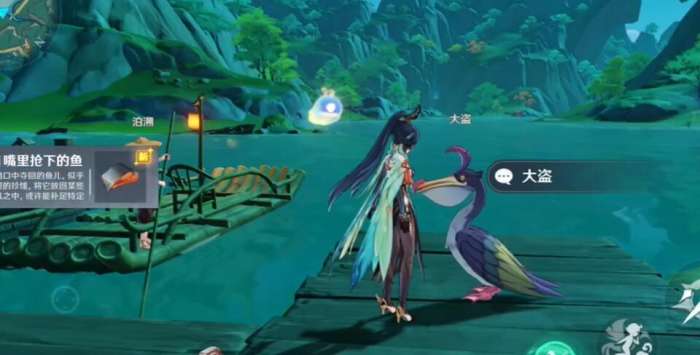 3.对话完成后,就可以从鹈鹕嘴里抢到鱼了。