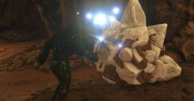 除了山顶,矿洞里面也藏着不少水晶,而且量还不小。矿洞的水晶有时候比山顶的还要密集,但问题是矿洞本身就不太好找,入口往往藏在山壁,或者地形比较复杂的地方,第一次进去很容易迷路。其中焦土地图的沙漠遗迹矿洞,是出了名的水晶丰富,那里的水晶矿石外观和普通水晶不太一样,看起来更像是一整块大石球,很有辨识度,看到这种就多敲几下,产量相当可观。