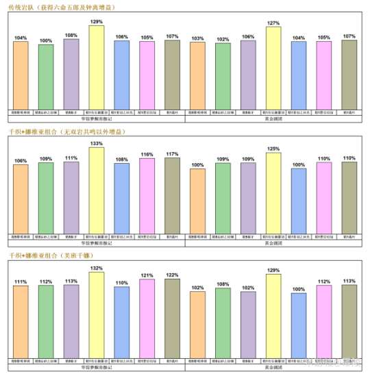 可以看出,与千钟组合相比,千织失去了一件装备并且双岩共鸣效果减弱后,她的自身伤害大大减少,有些配置下甚至减少了50%。因此,作为副C的千织价值并不突出。