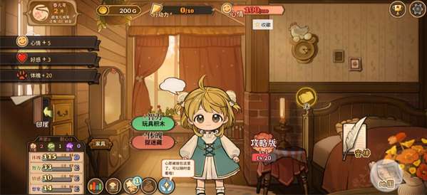 属性的点数需要我们通过活动来获取,例如野马湖划船和画画,餐厅听故事,在家玩积木等,当我们获得足够的点数,属性就会升级,属性升级即可获得天赋点