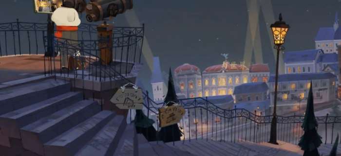3. 路上会依次路过糖果店——书店——裁缝店,进去问老板照片,然后做了书店整理的任务再走。路上不要忘记收集卡牌。去下城区找老大排音符,排完会离开,这时候走右边(福利院)。