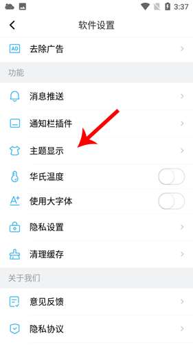 软件提交 专题合集 热门手游打开新晴天气App后,切换至下方“我的”栏目,点击右上角“设置”图标,进入界面后找到并打开“主题显示”功能,在主题显示设置界面打开“主题广场”,选择喜欢的皮肤主题后点击“使用”即可完成更换。该功能支持多样化主题选择,用户可根据个人偏好自定义界面风格。