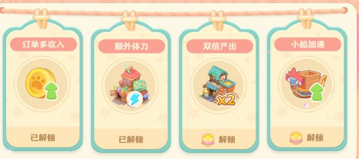 3.真丶永远的神器,梦想家勋章,极致性价比,海量体力,海量道具,自选限定兑换商店,以及最最最重要的四种特权BUFF加成!订单收入!额外体力!双倍产出!小船加速!