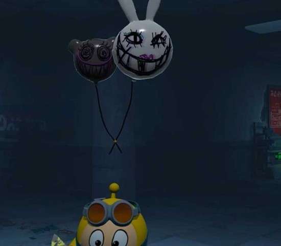 新增的敌对单位“熊兔气球”是本版本的核心设计亮点。该单位由熊头和兔头双气球构成,是首个在天花板固定轨道上位移的敌人。常态下它会沿顶部轨道静默滑行,一旦侦测到玩家便会自动锁定其正上方的位置,并伴随轻微的气流声效及表皮纹理的躁动变化,形成明确的追踪提示。其行为模式兼顾了隐蔽性与可预判性,为玩家的战术应对提供了操作空间。
