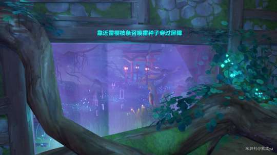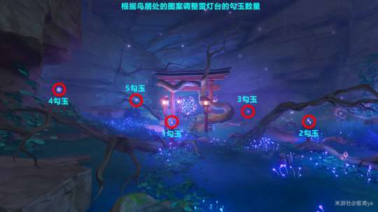 靠近雷樱枝条召唤雷种子后穿过屏障来到结界旁,靠近雷灯台后放入「镇物」开始净化。然后根据鸟居上的图案调整雷灯台的勾玉顺序,调整后返回雷灯台选择祝祷便会出现「落武者」,击败后与花散里对话即可完成本阶段任务