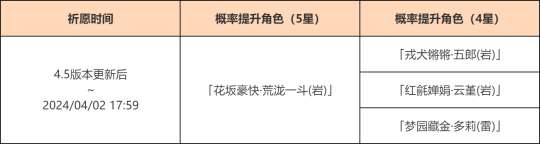 ●活动期间,限定5星角色「花坂豪快·荒泷一斗(岩)」的祈愿获取概率将大幅提升!