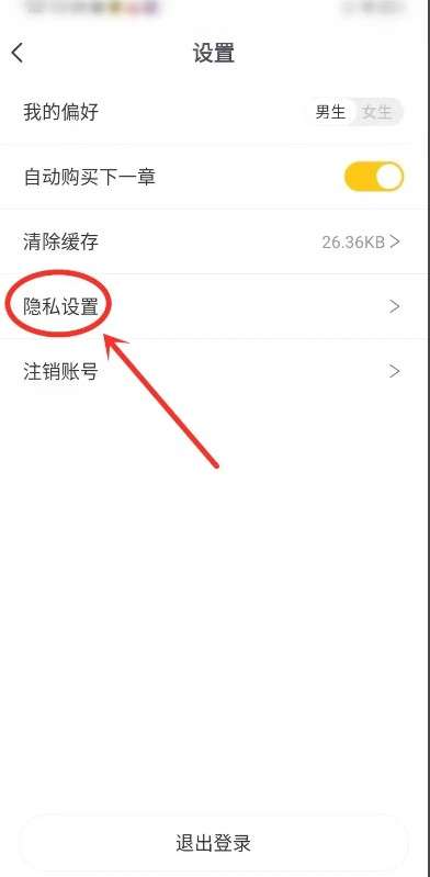 在设置页面找到【隐私设置】选项,点击进入。