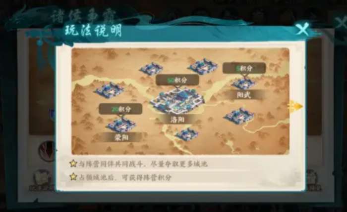 诸侯争霸活动每周一、五晚21:00-22:00开启,前提是服务器开服时间大于30天并且玩家等级达到60级并且处于同一个赛季。活动使用的是跨服匹配模式,最少需要两个区服一起参加。玩家会以服务器为单位被随机分配到不同的阵营里,以占领城池为目的展开一场大战。每个阵营要通过攻城战、资源战、支援战等多样的战斗形式来累积阵营积分,同时依靠个人的贡献来累积个人积分。