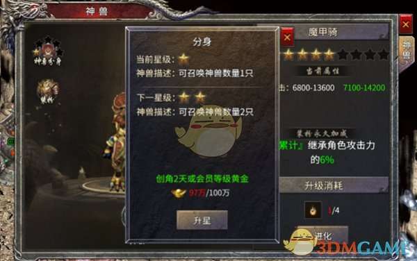 而神兽还拥有独特的“分身”技能,可消耗元宝对技能进行升星操作,最多可以召唤5只神兽分身,飞速打怪不是梦!