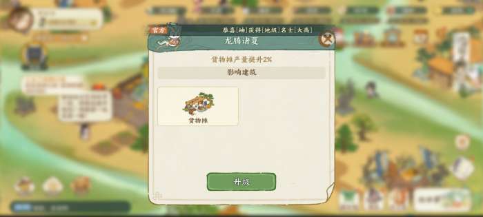 给建筑龙腾诸夏升级,提升货物摊产量,提升铜币产量。
