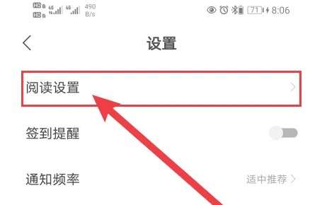 在设置界面,点击【阅读设置】进入,如图所示。