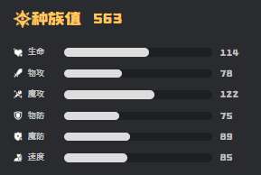 上面说了这只精灵强的地方在属性和技能上,先要带大家看的是其属性也就是种族值,在成为完全体后它的种族值来到了563这一数值,这个数值是非常高的了放在早期来说,这其中生命值和魔攻属性都非常的不错。