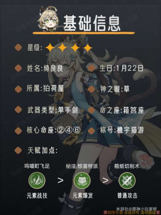 ① 草行久绮队: 纳西妲+行秋+久岐忍+绮良良