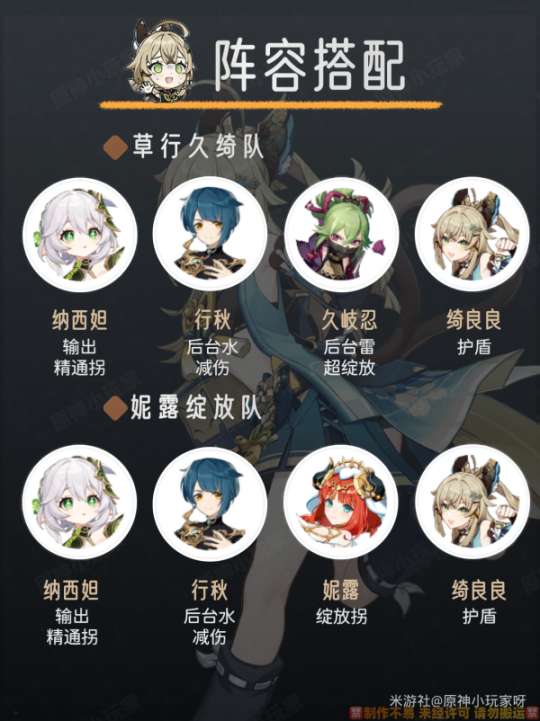 ② 妮露绽放队: 纳西妲+行秋+妮露+绮良良