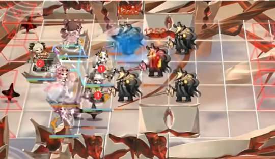 根据图示,开始先部署产生费用的【①能天使】,然后再部署向右侧的【②澄闪】和【③艾雅法拉】。