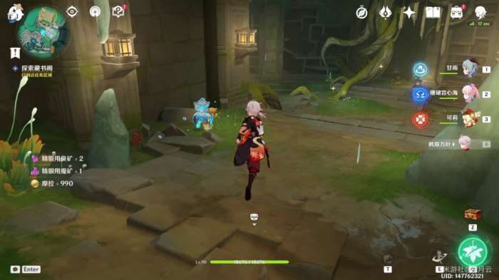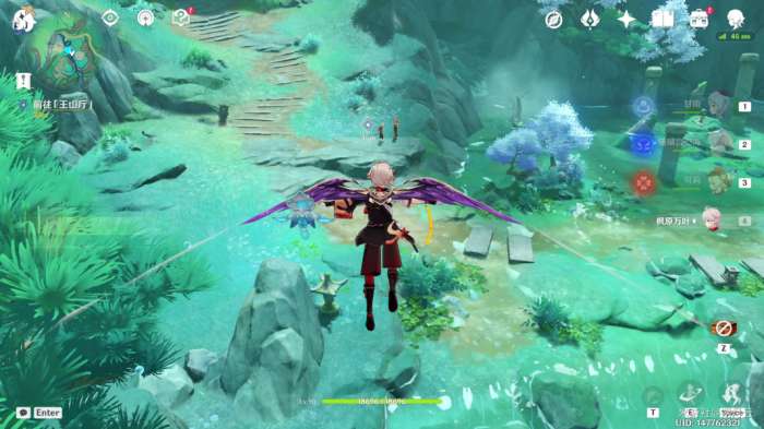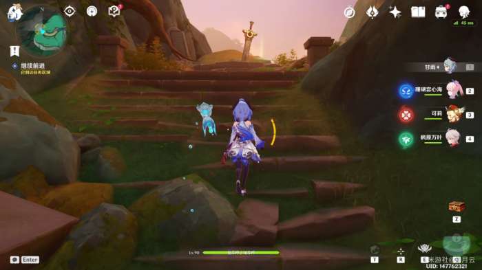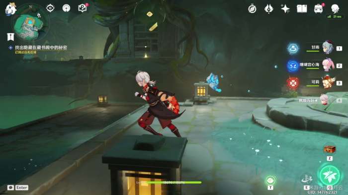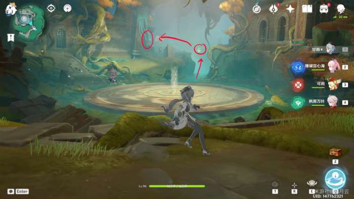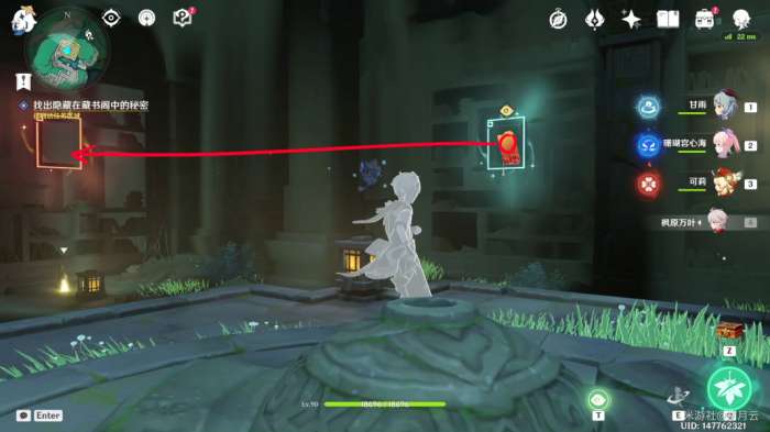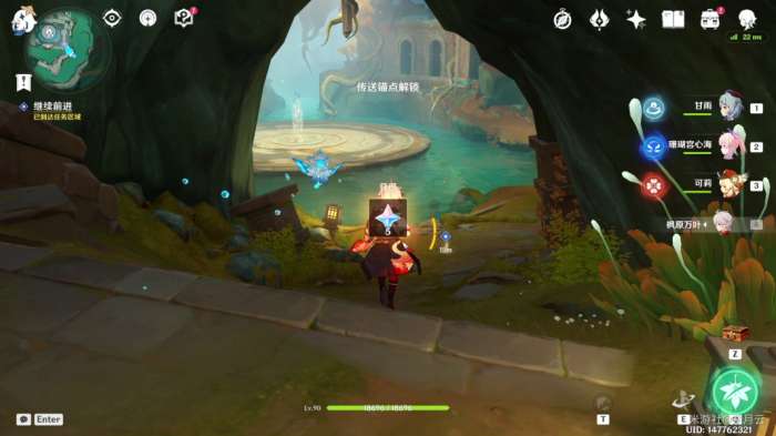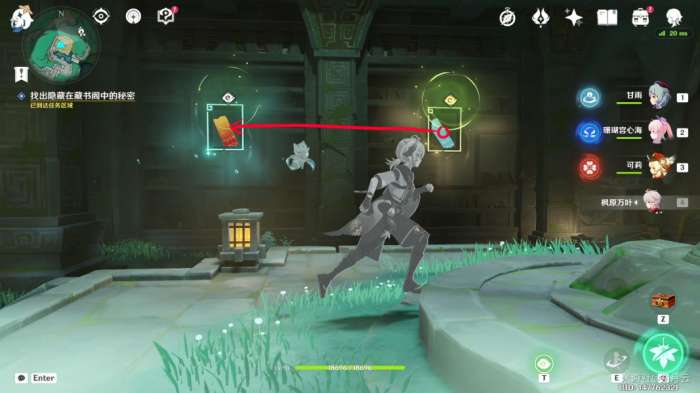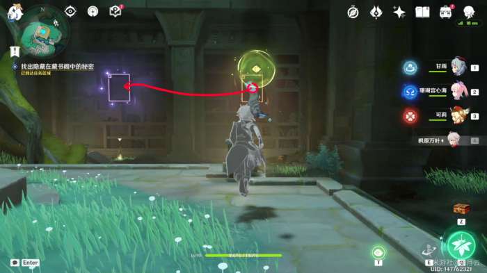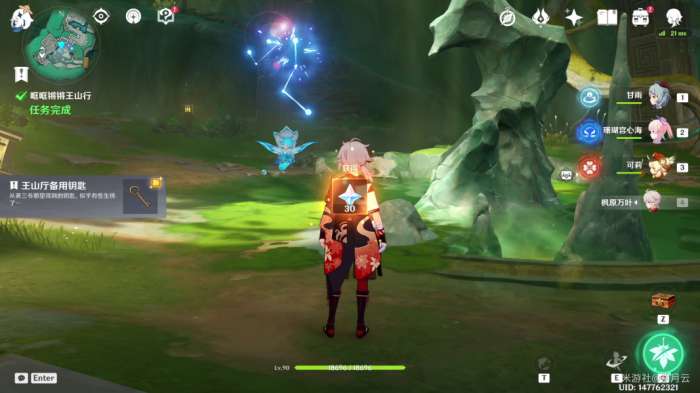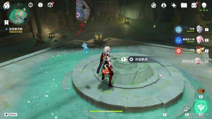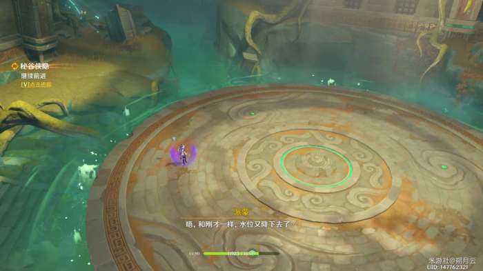 完成后,机关自动启动(如果未启动可再次与平台上的机关交互一次),水池中的水位下降,并显示出新的路径,该部分任务结束,开启最后一部分任务“秘谷侠隐”。