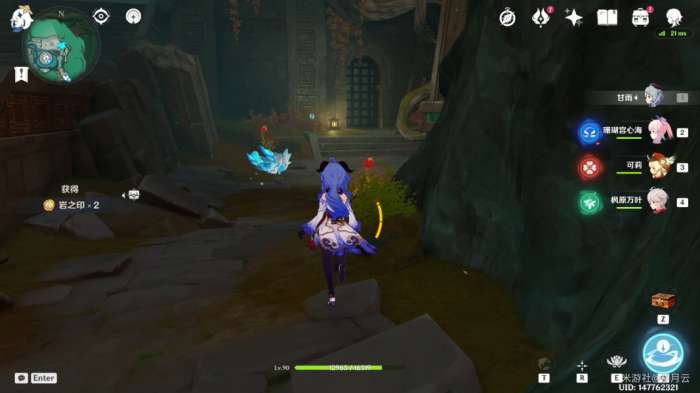 在门的周边寻找两枚岩种子,激活门口的机关,打开第一扇门。