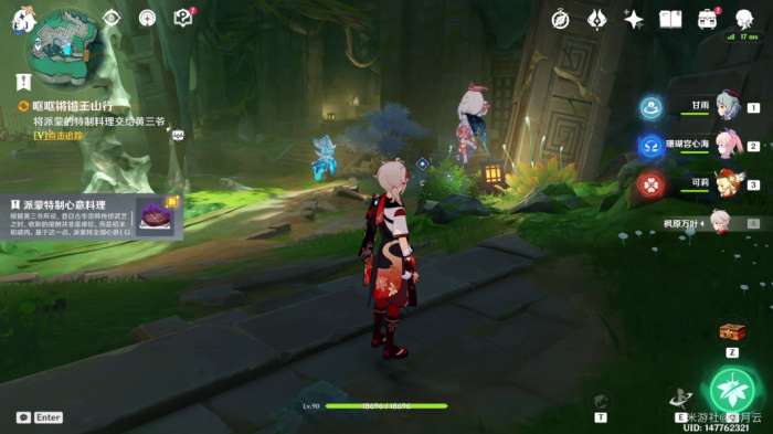 面对黄三爷的要求,依照派蒙的指示,完成一份「派蒙特制心意料理」,并交付给黄三爷。